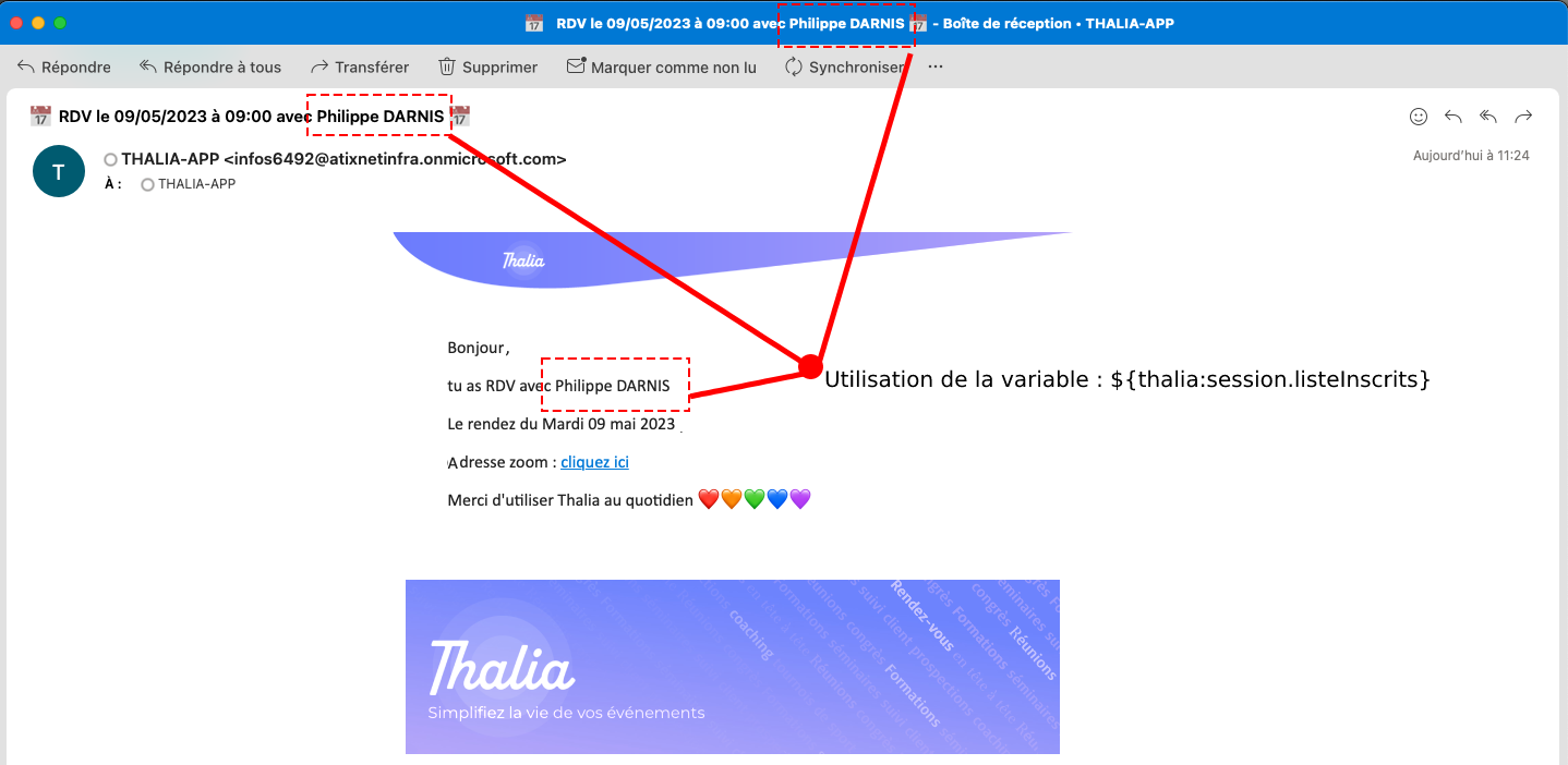 Dans cette fiche nous vous expliquerons comment utiliser la variable : ${thalia:session.listeInscrits}