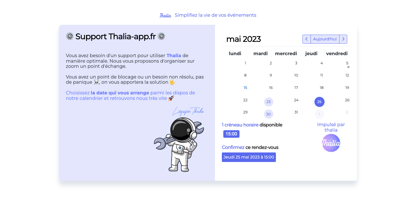 - RDV individuel : Permet à un invité de réserver une date suivant vos dispos