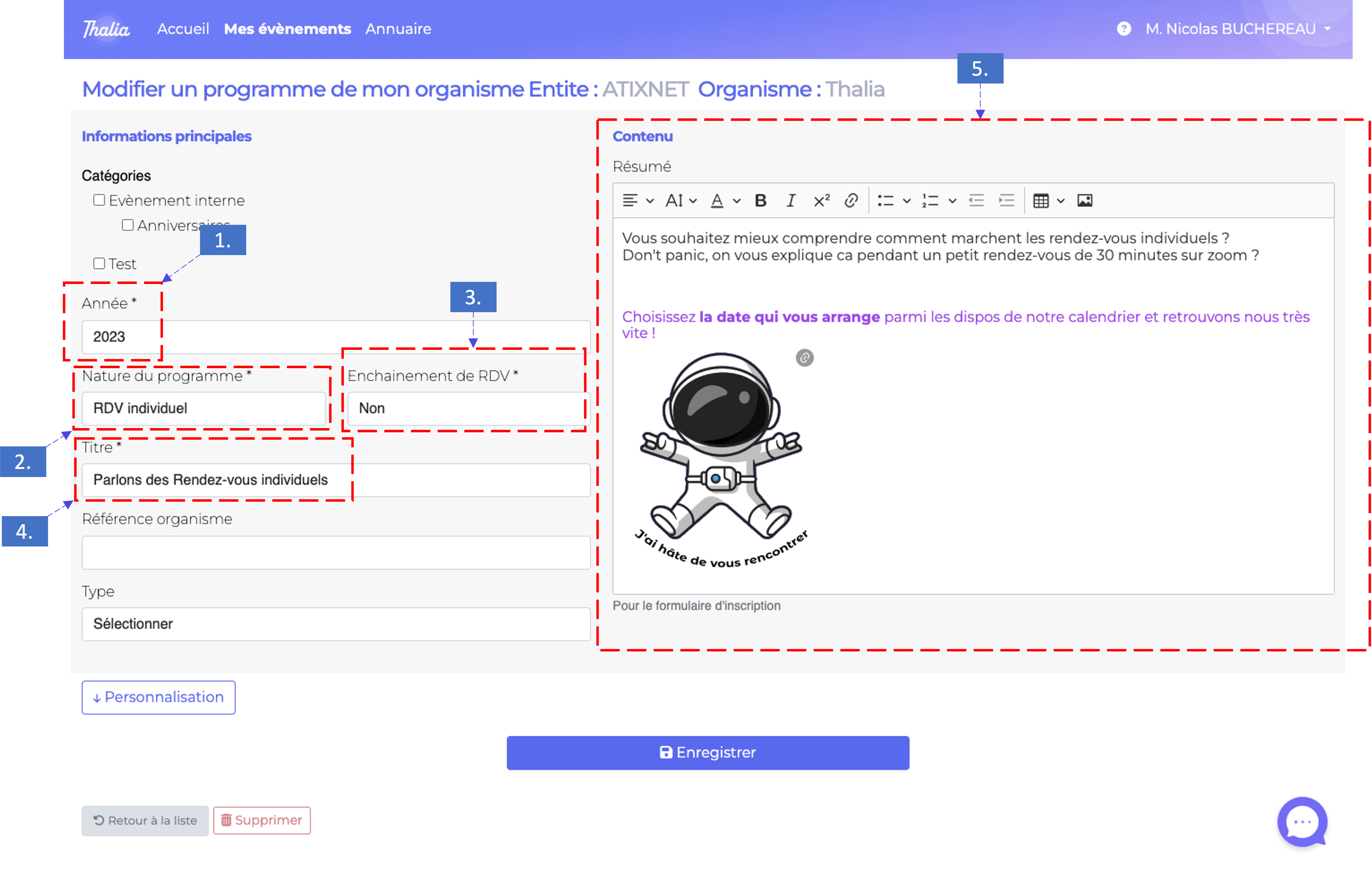 - Permet de déclarer l'année du calendrier, pour pouvoir l'archiver l'année prochaine