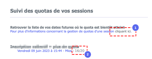 - Les quotas des sessions des événements collectifs qui arrivent à 20% de places restantes