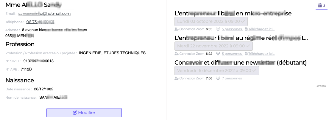 - Visualiser son historique d'inscriptions : Visualiser l'ensemble des événements où votre contact c'est inscrit