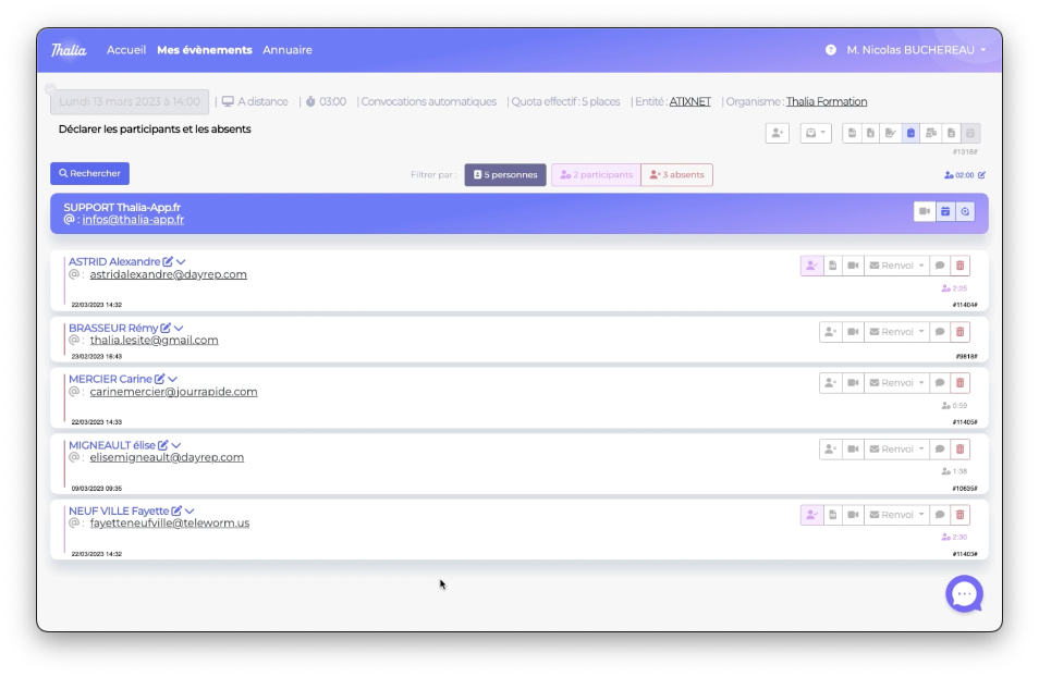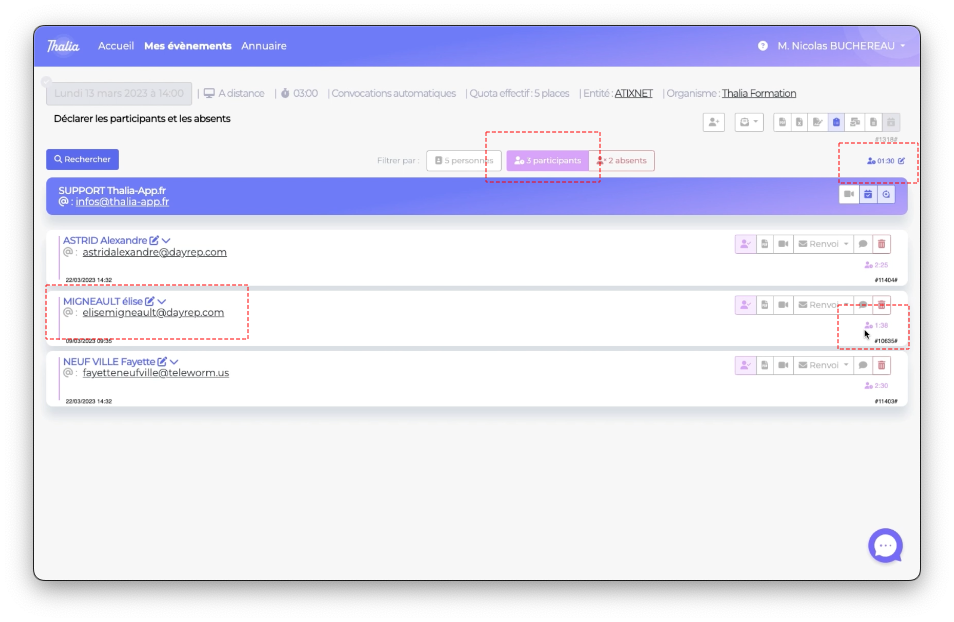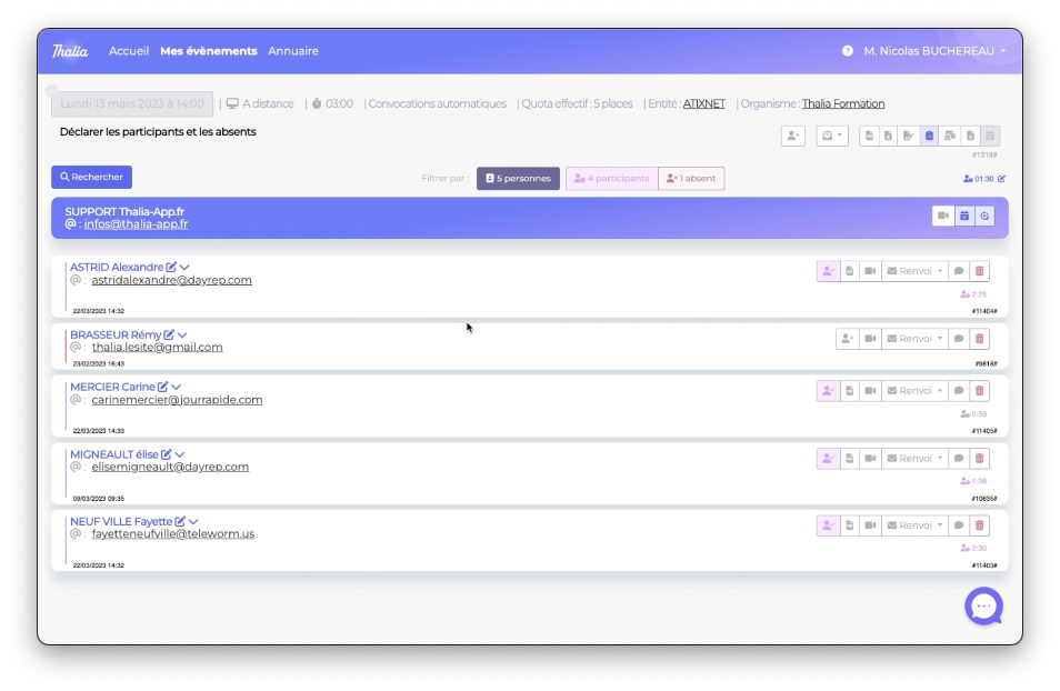 vous obtiendrez rapidement une vision de combien vous avez de participants et combien d'absents