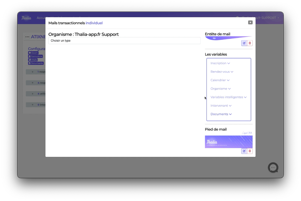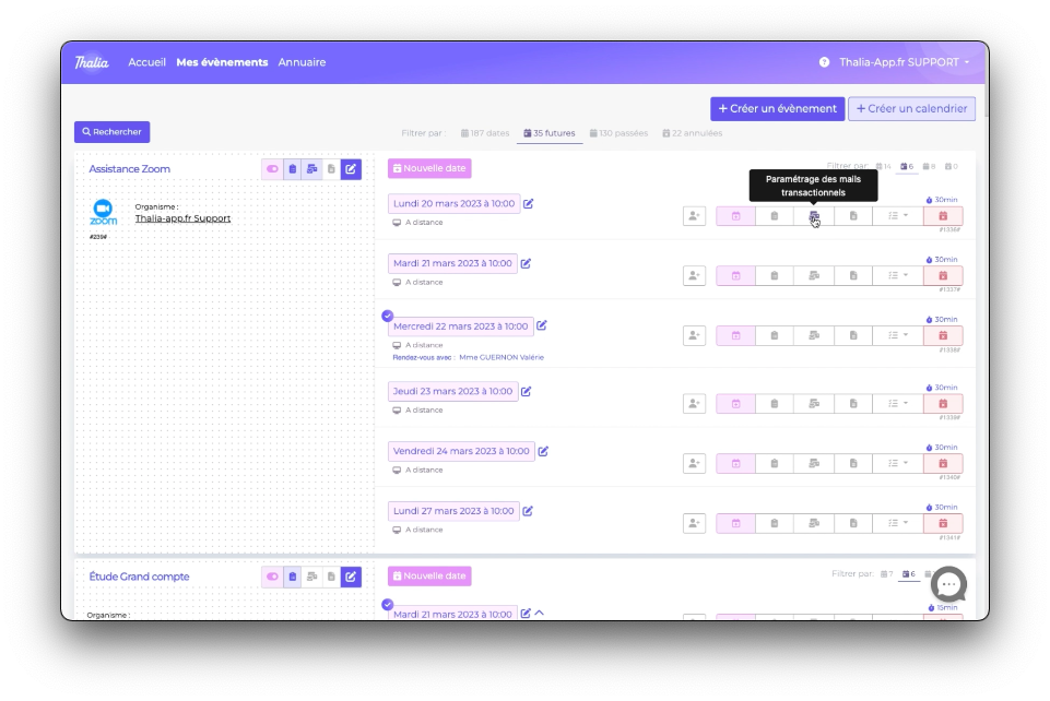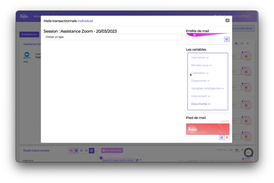 Dans notre exemple nous allons nous concentrer sur le mail transactionnel de convocation
