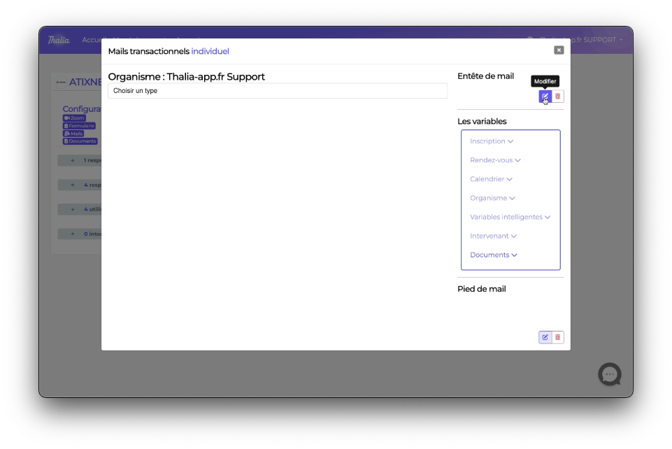 Éditez l'entête de mail et le pied de mail