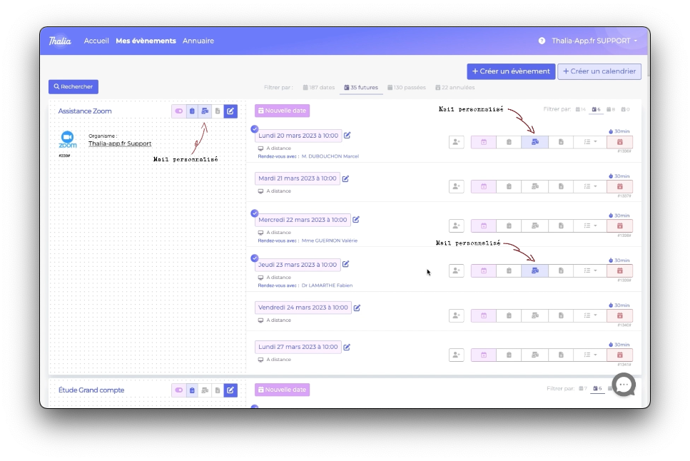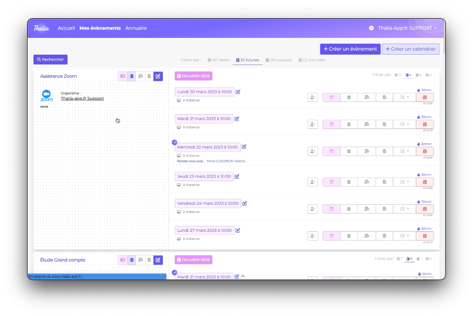Dernier exemple, la page programme (Mes événements ou mes formations) avec en personnalisé :