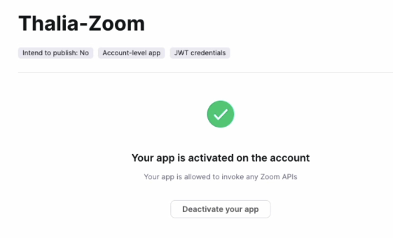 Cela va permettre à Thalia de dialoguer avec Zoom pour gérer les automatisations entre les 2 :