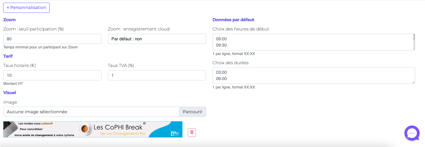 Seuil de participation Zoom : Pour un programme donné, modifier la valeur initialement déclarée dans votre administration.